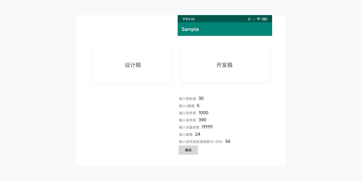 我们发现通过调整Z轴阴影值及底层透明度阴影效果是可以和设计稿视觉效果保持一致的,其实安卓的阴影也可以很通透很清秀,也可以不占位。根据我们的设计稿效果调整好相同视觉效果的参数进行封装成组件即可。