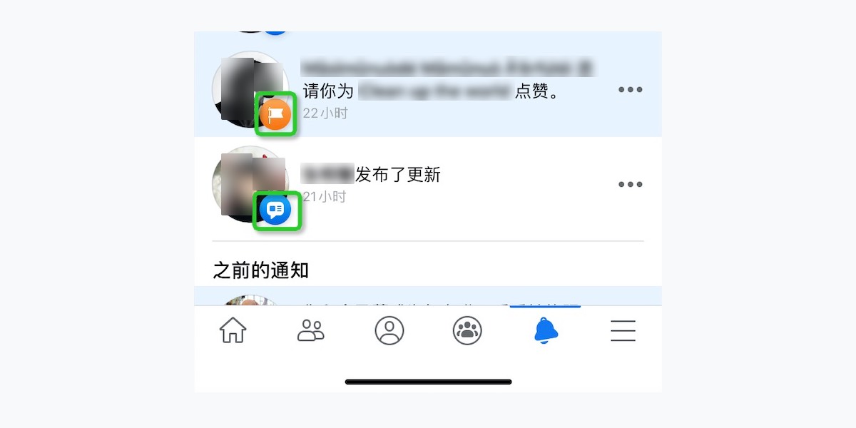 例如Facebook的这个通知类型图标阴影,当网络情况特别差的时候这个区域的阴影是预先加载出来的,说明阴影和上层是分开的。
